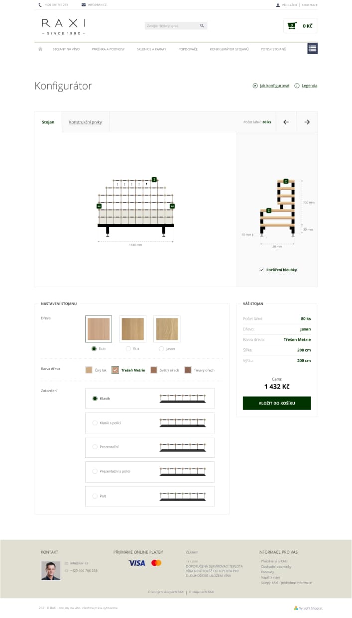 Raxi.cz je tradiční český výrobce stojanů na víno, které vyváží do celého světa. Zákazníci Raxi mohou zakoupit stojany na víno s velkou kapacitou a také atypickým tvarem. Zákazníkem našeho klienta je nejčastěji majitel vinného sklepa, vinotéky, baru atd. Proč je pro našeho klienta nutný konfigurátor na míru?