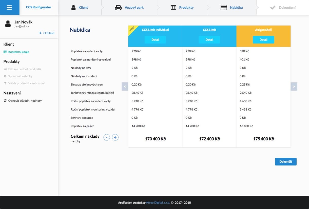Pro největšího poskytovatele tankovacích karet v ČR jsme naprogramovali unikátní konfigurátor pro podporu prodeje. Aplikaci jsme postavili na Node.js a React.js. Naším cílem bylo zjednodušit práci obchodním zástupcům ze společnosti CCS a připravit tak pro ně pohodlný on-line konfigurátor, díky kterému můžou rychle a přehledně vytvářet nabídky pro své klienty. Konfigurátor umí vytvářet nabídky přímo na míru, podle vložených parametrů a zároveň umí pracovat s Keboolou, která denně zajišťuje aktuální ceny PHM. Aplikace běží svižně na technologii React.