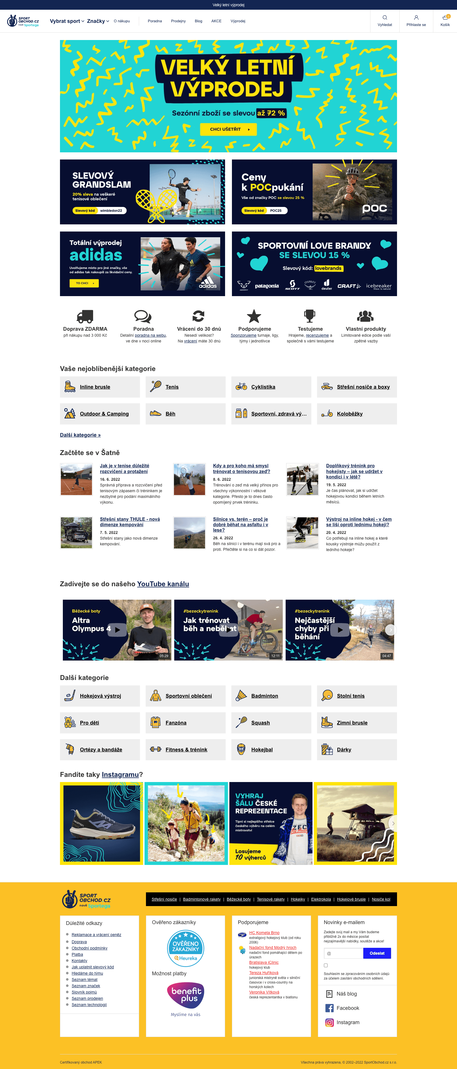 Rozsáhlé e-shopové řešení, které nabízí vše, co očekáváte od moderního e-shopu. SportObchod.cz je speciálka, která má své zboží roztříděno podle kategorie sportu, či podle vašich oblíbených značek. Součástí e-shopu je také poradna, kterou ocení všichni sportovní nadšenci.